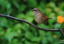 红点颏:是鸟纲、鹟科的鸣禽。又名西伯利亚歌鸲。体长14-17厘米,体重16-27克。雄鸟头部、上体主要为橄榄褐色。眉纹白色。颏部、喉部红色,周围有黑色狭纹。胸部灰色,腹部白色。雌鸟颏部、喉部不呈赤红色,…全部>>