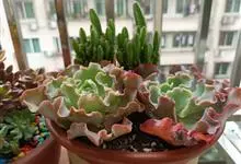 女王花笠,又名扇贝石莲花、女王花舞笠,是景天科拟石莲花属的多肉植物。由美国加利福尼亚州的育种师Dick Wright于1964年培育。特征是呈大波浪状褶皱的红色叶缘和气质高贵的粉紫色调。…全部>>