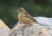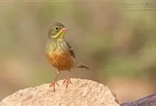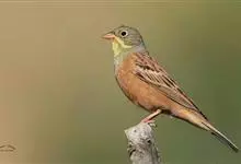圃鹀:体重20-25克,体长150-175毫米,属小型鸣禽。喙为圆锥形,与雀科的鸟类相比较为细弱,上下喙边缘不紧密切合而微向内弯,因而切合线中略有缝隙;体羽似麻雀,头上、后颈及胸橄榄绿色,翕呈栗褐色…全部>>