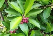 矮紫金牛是报春花科、紫金牛属灌木,株高1-2米。叶片革质,倒卵形或椭圆状倒卵形,少数倒披针形,基部楔状,微下延,全缘,顶端广急尖至钝。花序为圆锥花序,是由多数亚伞形花序或伞房花序组成。花瓣粉红或红紫色。…全部>>