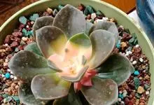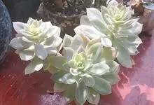 蓝石莲是景天科、拟石莲花属的多肉植物。茎部粗壮,成熟植株茎部木质化。叶片莲座型密集排列,株径不会很大,叶片相对较薄,常年绿色,表面布有白色粉末,中部凹陷,呈倒水滴状。叶尖较尖,叶缘光滑无褶皱,…全部>>