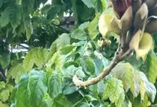 十字架树是紫葳科、葫芦树属小灌木,高3-6米。叶簇生于小枝上;小叶长倒披针形至倒匙形,几无柄,叶柄具阔翅。花1-2朵生于小枝或老茎上;花梗长约1厘米。花萼淡紫色。花冠褐色,具有紫褐色脉纹,近钟状,具…全部>>