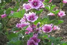 锦葵:二年生或多年生直立草本,高50-90厘米,分枝多,疏被粗毛。叶圆心形或肾形,具5-7圆齿状钝裂片,两面均无毛或仅脉上疏被短糙伏毛。花3-11朵簇生,小苞片3,长圆形疏被柔毛;花紫红色或白色,…全部>>
