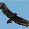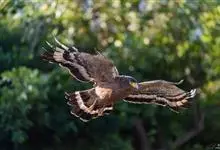 蛇雕是鹰形目鹰科蛇雕属鸟类,又称蛇鹰、白腹蛇雕、冠蛇雕。成鸟额部白色,头顶黑色,枕部黑色带白斑的冠羽可呈扇状打开;上体暗褐色,具窄的白色羽缘;尾黑色,具一条白色的宽中央横带及白色的窄外缘;翼褐色杂白斑,…全部>>