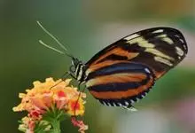 黑脉金斑蝶:翅阔8.6-12.4厘米。雄蝶较雌蝶为大。成年蝶颜色鲜艳,翅膀上有显眼的橙色及黑色斑纹,周围是宽阔的黑色边框,布有许多白色斑点。这种引人注目的着色是对捕食者的视觉警告,表示这个物种有毒;…全部>>