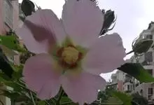 木芙蓉,锦葵科木槿属落叶灌木或小乔木。小枝上有细绒毛;叶片为卵状心形,托叶为披针形,常早落;花单生,花萼为钟形,花冠初为白色或淡红色,后逐渐变为深红色;果实为扁球形,有淡黄色的毛附着。花期8到10月。…全部>>