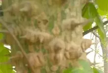刺楸 Koidz.),五加科刺楸属落叶乔木,高30米。树干通直;树皮纵裂灰黑褐色;叶掌状分裂长圆状卵形;伞形花序,花较小白色或淡黄绿色;果蓝黑色;花期7-8月,果期9-11月。变种有深裂叶刺楸,…全部>>