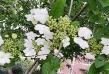 蝴蝶戏珠花 Miq.)是荚蒾科荚蒾属植物。落叶灌木,高达3米;当年小枝浅黄褐色。叶较狭,宽卵形或矩圆状卵形,有时椭圆状倒卵形。花序直径4-10厘米,外围有4-6朵白色、木型的不孕花。果实先红色后变黑色,…全部>>