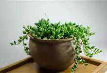 珍珠吊兰因鼓鼓、饱满翠绿的椭圆形小叶子形似珍珠状而得名。又名翡翠珠、 佛珠吊兰、翡翠珠、绿之铃,绿铃。菊科千里光属多肉植物,花期一般是当年的12月至翌年1月。珍珠吊兰性喜富含有机质的、疏松肥沃的土壤。…全部>>