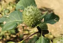 曼陀罗,茄科曼陀罗属一年生大型草本植物,全株光滑。有臭气;叶呈广卯形,边缘具不规则波状浅齿裂;花单生于枝杖间或叶腋,直立,有短梗;花萼是筒状裂片三角形,颜色为白色或淡紫色;果实为蒴果卵状,…全部>>