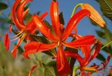 山丹是百合科百合属的多年生草本植物。鳞茎卵形或圆锥形,鳞片长圆形或长卵形,白色;叶散生茎中部,线形,边缘有乳头状突起;花单生或数朵成总状花序,花鲜红色,常无斑点,花被片反卷,…全部>>