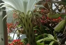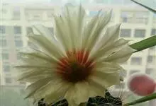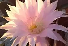 仙人球花 仙人掌科,仙人球属。植株单生或成丛。幼株球形,老株长成圆筒状,高可达75厘米,直径12-15厘米。球体暗绿色,具棱11-12。刺锥状,黑色,长1-1.5厘米。花着生于球体侧方,大型嗽喇叭状…全部>>
