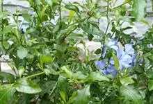 蓝花丹是白花丹科、白花丹属的常绿亚灌木。高约1米;叶薄,呈菱状卵形至狭长卵形;穗状总状花序,总花梗短,花冠淡蓝色至蓝白色,呈倒卵形,苞片呈线状狭长卵形,小苞呈狭卵形或长卵形,…全部>>