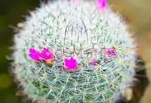 仙人掌科乳突球属原产墨西哥,通常单生,茎圆桶形,径粗9-10cm,高25-30cm,深绿色。棱13-21,放射刺20-30,中刺7-15,长2cm,红褐色。花色紫红。喜温暖干燥和阳光充足环境。较耐寒,…全部>>