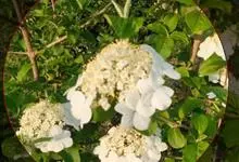 蝴蝶戏珠花 Miq.)是荚蒾科荚蒾属植物。落叶灌木,高达3米;当年小枝浅黄褐色。叶较狭,宽卵形或矩圆状卵形,有时椭圆状倒卵形。花序直径4-10厘米,外围有4-6朵白色、木型的不孕花。果实先红色后变黑色,…全部>>