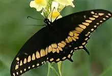 金凤蝶,是鳞翅目凤蝶科凤蝶属动物。金凤蝶为中型凤蝶,翅展70-84毫米,翅背面底色黑褐色,翅脉黑色,翅室具黄斑;前翅背面基部呈暗黄色,亚外缘为黑色,内具一列小黄斑;后翅背面亚外缘区具黑宽边,…全部>>