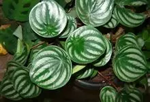 西瓜皮椒草 E. Morren)是胡椒科、草胡椒属植物。多年常绿草木,株高约15-20厘米。根茎顶端从生状抽生长长的叶柄,红褐色的叶柄上端着生单叶。叶片卵圆形至心脏形,向叶柄内反卷成半圆形。穗状花序,…全部>>