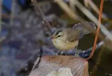 极北柳莺:体长11-13厘米,体小偏灰橄榄色,具明显的黄白色长眉纹,眼先及过眼纹近黑。上体概呈灰橄榄绿色;具甚浅的白色翼斑,大覆羽先端黄白色,形成一道翅上翼斑;中覆羽羽尖成第二道模糊的翼斑;下体白色…全部>>
