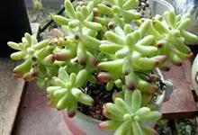 乙女心是景天科景天属的多肉植物,原产墨西哥。多年生亚灌木,茎叶肉质,株高5-30厘米。叶片簇生于茎顶,圆柱状,淡绿色或淡灰蓝色,叶先端具红色,叶长3~4厘米。花小,黄色。春秋为生长季,…全部>>
