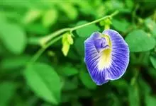 蝶豆是豆科蝶豆属植物。攀援状草质藤本。茎、小枝细弱,被脱落性贴伏短柔毛。叶长2.5-5厘米;托叶小,线形,长2-5毫米;叶柄长1.5-3厘米。花大,单朵腋生;苞片2,披针形。荚果长5-11厘米,…全部>>