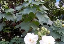 木芙蓉,锦葵科木槿属落叶灌木或小乔木。小枝上有细绒毛;叶片为卵状心形,托叶为披针形,常早落;花单生,花萼为钟形,花冠初为白色或淡红色,后逐渐变为深红色;果实为扁球形,有淡黄色的毛附着。花期8到10月。…全部>>