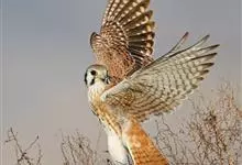 红隼:是隼科、隼属的小型猛禽之一。体重173-335克,体长305-360毫米。翅狭长而尖,尾亦较长,外形和共同爪隼非常相似。雄鸟头蓝灰色,背和翅上覆羽砖红色,具三角形黑斑;腰、尾上覆羽和尾羽蓝灰色,…全部>>