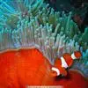 小丑鱼是鲈形目雀鲷科小丑鱼属鱼类的统称。体长仅5—6厘米。身体色彩艳丽,多为红色、橘红色;除透明的胸鳍与软背鳍鳍条外部,其余鳍均为黑色。体形怪异,体色多变,通常体侧有白色条纹。…全部>>