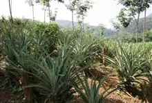 凤梨 Merr.),别名菠萝、露兜子、波罗等,是凤梨科凤梨属一种多年生草本果树。该植物植株高约1米。茎短粗,呈褐色,基部有吸芽抽出。叶多数,莲座式排列,剑形;穗状花序于叶丛中抽出,状如松球;聚花果球状,…全部>>