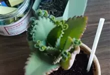 棒叶落地生根是景天科、落地生根属植物。茎直立、粉褐色。叶圆棒形,上表面有沟、粉色,有红褐斑。叶片交互对生,交叉排列成十字形。叶端锯齿上长有很小的幼株、落地后即可生根成活。原产非洲马达加斯加。…全部>>