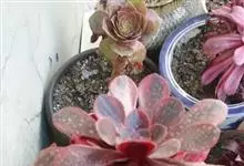红缘莲花掌属蔷薇目、景天科植物,原产大西洋的加那利群岛。质厚,蓝绿色,被白霜,叶缘红褐色。聚伞花序,花浅黄色,有时带红晕。叶形叶色较美,有一定的观赏价值,多盆栽用于点缀室内;可放置于电视、电脑旁,…全部>>
