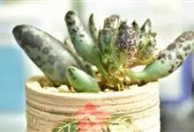 褐斑伽蓝是景天科伽蓝菜属的多年生多肉类植物,茎直立,多分枝,叶生于枝上,肉质叶片匙形,上面密被白色绒毛,下部全缘,叶缘上部有缺刻,缺刻处有深褐或棕色斑块。褐斑伽蓝原产非洲的马达加斯加岛。…全部>>