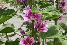 锦葵:二年生或多年生直立草本,高50-90厘米,分枝多,疏被粗毛。叶圆心形或肾形,具5-7圆齿状钝裂片,两面均无毛或仅脉上疏被短糙伏毛。花3-11朵簇生,小苞片3,长圆形疏被柔毛;花紫红色或白色,…全部>>
