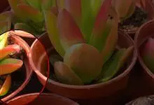 叶子表面宽厚,富肉质感且带有磨纱质感,看像石头质地;开红色小花,生于植株顶部,倒伞形密生,形状像花球一样。 全部>>