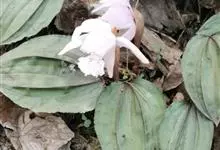 独花兰是兰科独花兰属地生草本植物。假鳞茎近椭圆或宽卵球形,淡黄白色,被膜质鞘;叶宽卵状椭圆形至宽椭圆形,先端急尖或短渐尖,基部圆形或近截形,背面紫红色;花白色,带肉红或淡紫色晕,唇瓣有紫红色斑点,…全部>>