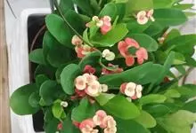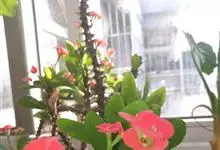 铁海棠为大戟科大戟属蔓生灌木植物;茎多分枝,具纵棱,呈旋转状;叶互生,通常集中于嫩枝上;每个花序基部边缘具微小的红色尖头;苞叶先端圆且具小尖头,无柄,上面鲜红色,下面淡红色;苞片丝状;子房光滑无毛,…全部>>