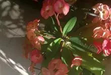 虎刺梅:别称铁海棠,是蔓生灌木植物。茎多分枝,长60-100厘米,直径5-10毫米,具纵棱,密生硬而尖的锥状刺,刺长1-1.5厘米,直径0.5-1.0 毫米,常呈3-5列排列于棱脊上,呈旋转。叶互生…全部>>