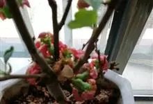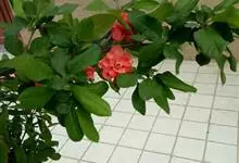 贴梗海棠Nakai)是蔷薇科、木瓜海棠属植物。落叶灌木,高达2米,枝条直立开展,有刺。叶片卵形至椭圆形,稀长椭圆形,长3-9厘米,宽1.5-5厘米。花先叶开放,3-5朵簇生于二年生老枝上。…全部>>