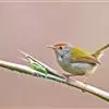 普通缝叶莺,是雀形目鹅科莺亚科缝叶莺属一种。体长10-14厘米,体重7-10克,雄鸟前额棕红,头顶至枕棕橄榄褐,上体橄榄绿染黄,飞羽及尾羽暗褐;繁殖期雄鸟的中央尾羽特形延长,下体淡皮黄白色。…全部>>