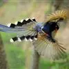 台湾蓝鹊:体长64至65厘米,翼展18至21厘米,尾长约40厘米,尾羽长占了总体长的三分之二。头、脸、颈、喉、胸都是黑色,黄色的眼珠包围黑色的瞳孔,鲜红色的鸟喙、双脚,…全部>>