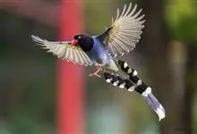 红嘴蓝鹊,别名山鹊、长尾鹊,是鸦科蓝鹊属的一种观赏性较强的大型鸣禽。该物种为体长54~65cm,头、颈、喉和胸黑色,头顶至后颈有一块白色至淡蓝白色或紫灰色块斑,其余上体紫蓝灰色或淡蓝灰褐色。尾长呈凸状,…全部>>