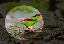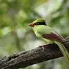 蓝绿鹊:中型鸟类,共有5个亚种。体长36-38厘米。尾长,嘴、脚红色。通体羽色主要为草绿色,宽阔的黑色贯眼纹向后延伸到后颈,在绿色的头侧极为醒目。两翅栗红色,内侧飞羽具黑色次端斑和白色尖端。尾绿色,…全部>>