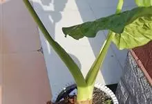 海芋 K. Koch),是天南星科海芋属的大型常绿草本植物;具匍匐根茎,有直立地上茎,基部生不定芽条;叶多数,亚革质,草绿色,箭状卵形,叶柄绿或污紫色,螺旋状排列,粗厚;花序梗圆柱形,绿色,有时污紫色,…全部>>