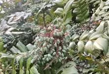 阔叶十大功劳 Carr. )是小檗科,十大功劳属常绿灌木或小乔木,高可达2米。叶长圆形,上面深绿色,叶脉显著,背面淡黄绿色,网脉隆起,小叶无柄,基部一对小叶倒卵状长圆形,总状花序簇生,…全部>>