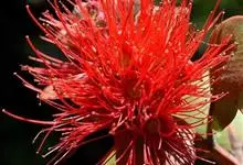 红千层是桃金娘科红千层属的常绿小乔木植物。红千层树皮坚硬,灰褐色,嫩枝有棱,初时有长丝毛,不久变无毛;叶片坚革质,线形;穗状花序生于枝顶,花瓣绿色,卵形,雄蕊鲜红色,花药暗紫色,…全部>>