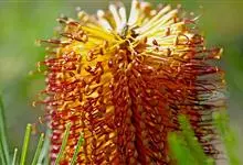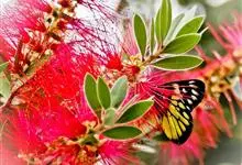 红千层是桃金娘科红千层属的常绿小乔木植物。红千层树皮坚硬,灰褐色,嫩枝有棱,初时有长丝毛,不久变无毛;叶片坚革质,线形;穗状花序生于枝顶,花瓣绿色,卵形,雄蕊鲜红色,花药暗紫色,…全部>>
