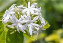 素馨花,木犀科素馨属多年生的攀援灌木植物。攀援灌木,小枝圆柱形,具棱或沟;叶对生,叶轴常具窄翼,小叶片卵形或长卵形;聚伞花序顶生或腋生,花序梗长,苞片线形,花萼无毛,裂片锥状线形,花冠白色,…全部>>