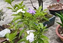鸳鸯茉莉,茄科鸳鸯茉莉属常绿灌木植物,高1米。茎皮深褐色;分枝力强;单叶互生纸质;花簇生,聚伞花序,花冠五裂花瓣锯齿,含苞时蘑菇状深紫色,花香浓郁;花期4-10月。鸳鸯茉莉花朵芳香,…全部>>