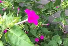 即紫茉莉,英文名:Four-o'clock,Marvel of Peru,为紫茉莉科、紫茉莉属多年生草本植物,一年生栽培。株高50~80cm。根粗壮,茎多分枝而散生。叶对生,卵形或心脏形。花数朵簇生…全部>>