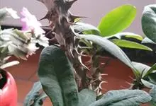虎刺梅:别称铁海棠,是蔓生灌木植物。茎多分枝,长60-100厘米,直径5-10毫米,具纵棱,密生硬而尖的锥状刺,刺长1-1.5厘米,直径0.5-1.0 毫米,常呈3-5列排列于棱脊上,呈旋转。叶互生…全部>>