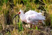 朱鹮是鹈形目鹮科朱鹮属的鸟类动物。其雄鸟通体白色,羽干及两翅与尾等均沾染粉红色;颈项上有很多长矛状羽毛,形成羽冠,耸立时非常夺目;嘴长而向下曲,呈黑色,先端朱红,脚的裸露部分亦呈亮红色。雌鸟羽色略同,…全部>>